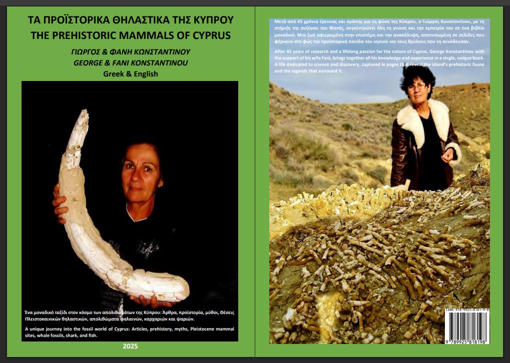 Συναρπαστικές ιστορίες, όπως αυτή της ανακάλυψης του νέου είδους, Palaeoloxodon xylophagous, το οποίο ήρθε να καλύψει το εξελικτικό κενό ανάμεσα στους μεγαλόσωμους ελέφαντες, που έφτασαν στην Κύπρο από την ηπειρωτική Ευρώπη, και στον μικρόσωμο νάνο ελέφαντα Palaeoloxodon Cypriotes, μπορεί πλέον να απολαύσει ο αναγνώστης του νέου δίγλωσσου βιβλίου (Ελληνικά και Αγγλικά) του Γιώργου Κωνσταντίνου «Τα προϊστορικά θηλαστικά της Κύπρου». Μετά το πρώτο του βιβλίο, «Τα πουλιά της Κύπρου», το οποίο κυκλοφορεί τόσο στην Ελληνική όσο και στην Αγγλική, ο φυσιοδίφης μάς «ξεναγεί» στα βάθη της της κυπριακής γης, όπου τα προϊστορικά ζώα και τα απολιθώματά τους συνιστούν μια άγνωστη αλλά συναρπαστική πτυχή της φυσικής κληρονομιάς του τόπου. Όπως και στο προηγούμενο έργο, το φωτογραφικό και πληροφοριακό υλικό γύρω από απολιθώματα προϊστορικών ειδών που έφερε στο φως είναι πλούσιο.