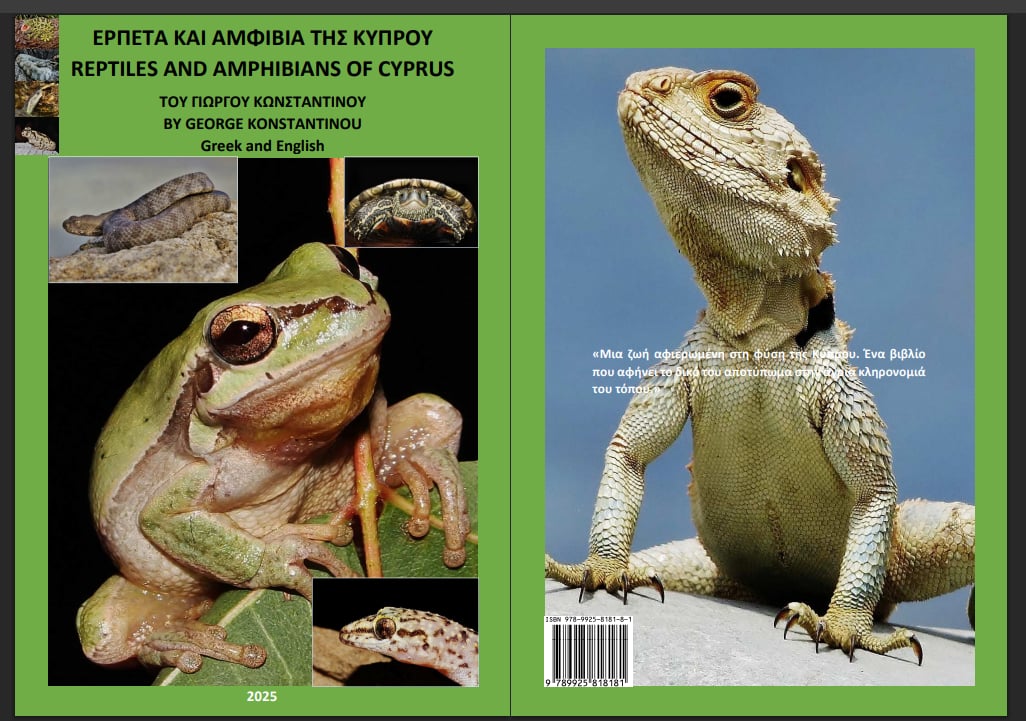 Ένα δεύτερο βιβλίο, το οποίο συνοδεύει εκδοτικά αυτό για τα απολιθώματα, αφορά πάλι τα «βάθη» της γης και συγκεκριμένα την ποικιλία των ερπετών. Το επίσης δίγλωσσο (Ελληνικά και Αγγλικά) «Ερπετά και αμφίβια της Κύπρου» φέρνει τον αναγνώστη κοντά στον κόσμο των φιδιών, των σαυρών και των χελωνών, από τις παραθαλάσσιες περιοχές μέχρι τις κορυφές του Τροόδους και του Πενταδακτύλου. Περιλαμβάνει όλα τα ερπετά και τα αμφίβια της Κύπρου, με λεπτομερείς περιγραφές, στοιχεία βιολογίας, κατανομής και οικολογίας, πλούσιο φωτογραφικό υλικό και προσωπικές παρατηρήσεις από πολυετή έρευνα στο πεδίο. «Στις σελίδες του βιβλίου μου αποτυπώνεται ένα ταξίδι εξερεύνησης στον θαυμαστό κόσμο των ερπετών και αμφίβιων της Κύπρου, με στόχο όχι μόνο να αναδειχθεί η μοναδικότητα και η οικολογική τους αξία αλλά και να καλλιεργηθεί ο σεβασμός και η κατανόηση για αυτά τα συχνά παρεξηγημένα πλάσματα. Κάθε είδος κουβαλά τη δική του φυσική ιστορία και διαδραματίζει σημαντικό ρόλο στα εύθραυστα οικοσυστήματα του νησιού μας», σημειώνει ο συγγραφέας.