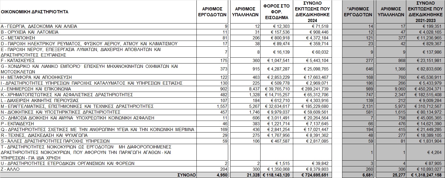 Τα έτη 2021-2023, οι φορολογικές εκπτώσεις που διεκδίκησαν 25.277 φορολογούμενοι, ανήλθαν στο €1,3 δισ. Δηλαδή συνολικά την περίοδο 2021-24 οι εκπτώσεις ξεπέρασαν τα €2 δισ.