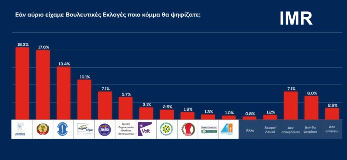 7. Στη μάχη των λεγόμενων μικρών πολιτικών σχηματισμών, το Volt, οι Οικολόγοι, η ΕΔΕΚ, η ΔΗΠΑ παλεύουν και για επιβίωση αλλά και για λόγο ύπαρξης. Το Volt φαίνεται να μπορεί να διεκδικήσει είσοδο στη Βουλή, οι Οικολόγοι βρίσκονται σε καθοδική πορεία, η ΕΔΕΚ είναι υπό εξαφάνιση, η ΔΗΠΑ αόρατη πια και με τον Μάριο Καρογιάν να συγκεντρώνει την πιο αρνητική εικόνα μεταξύ αρχηγών. Σημειώνεται ότι ο αριθμός των κομμάτων που θα καταφέρουν να περάσουν το όριο του 3,6% και να εισέλθουν στη Βουλή θα επηρεάσει συνολικά το ισοζύγιο κομματικών εδρών, τις μελλοντικές συνεργασίες και γενικότερα το πολιτικό και κομματικό σύστημα την επομένη των εκλογών (νυν κυβέρνηση, συμμαχίες για Προεδρικές ’28).