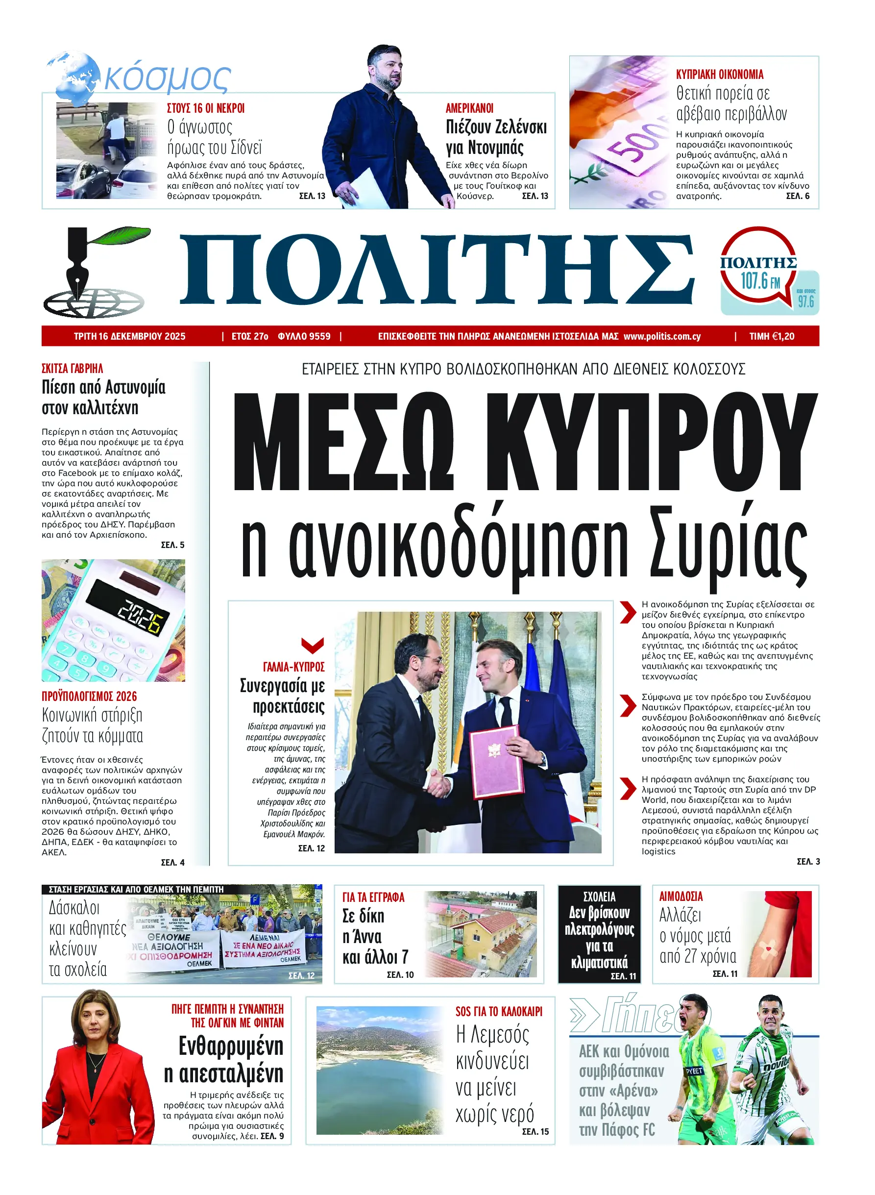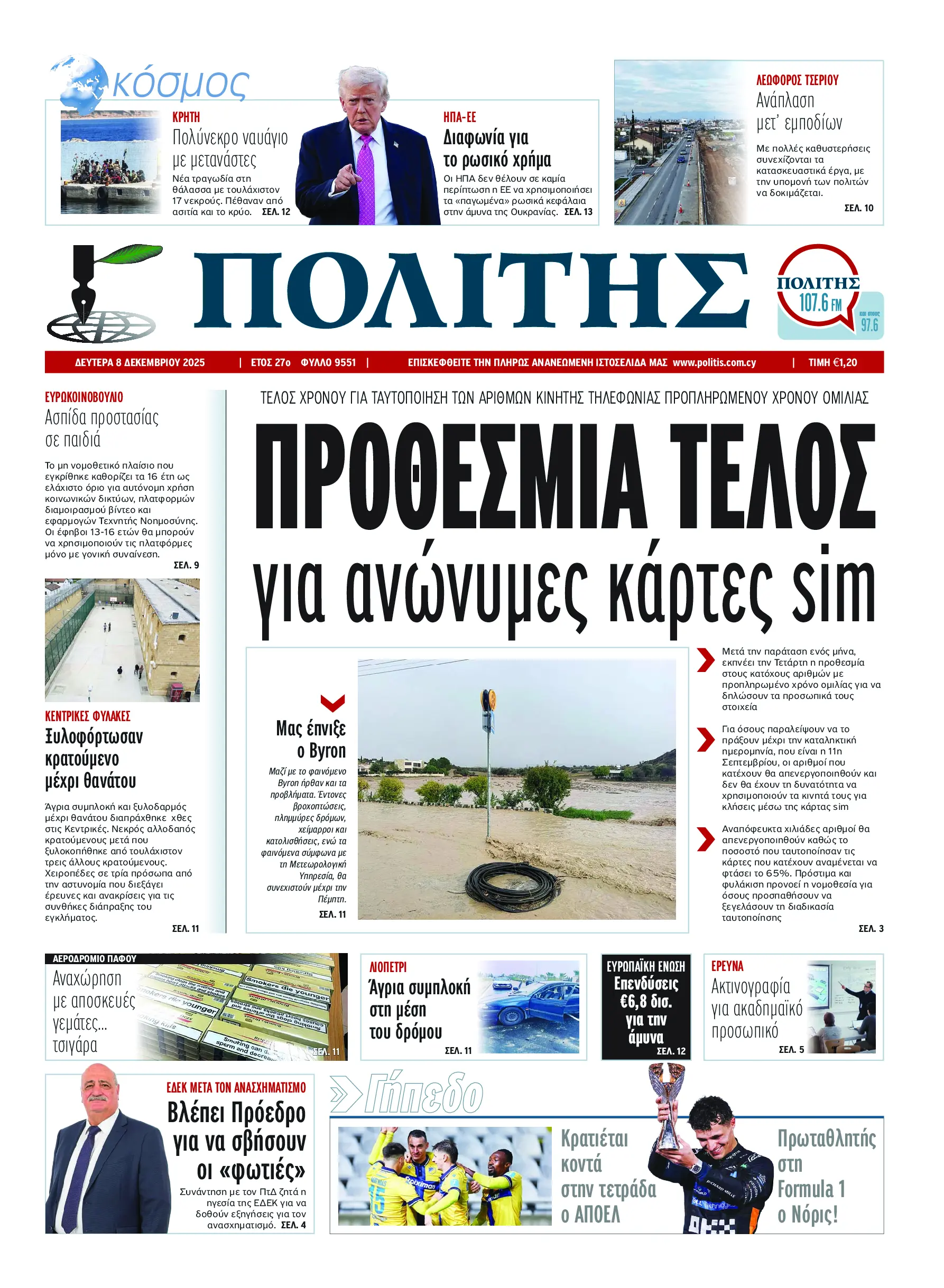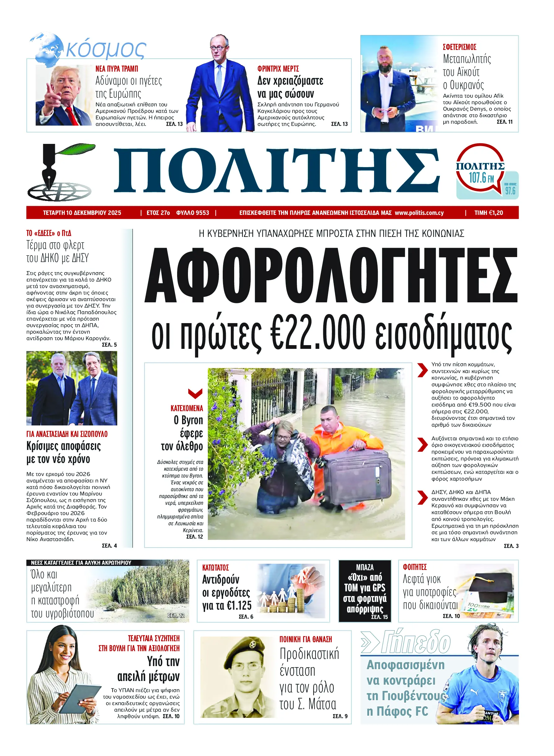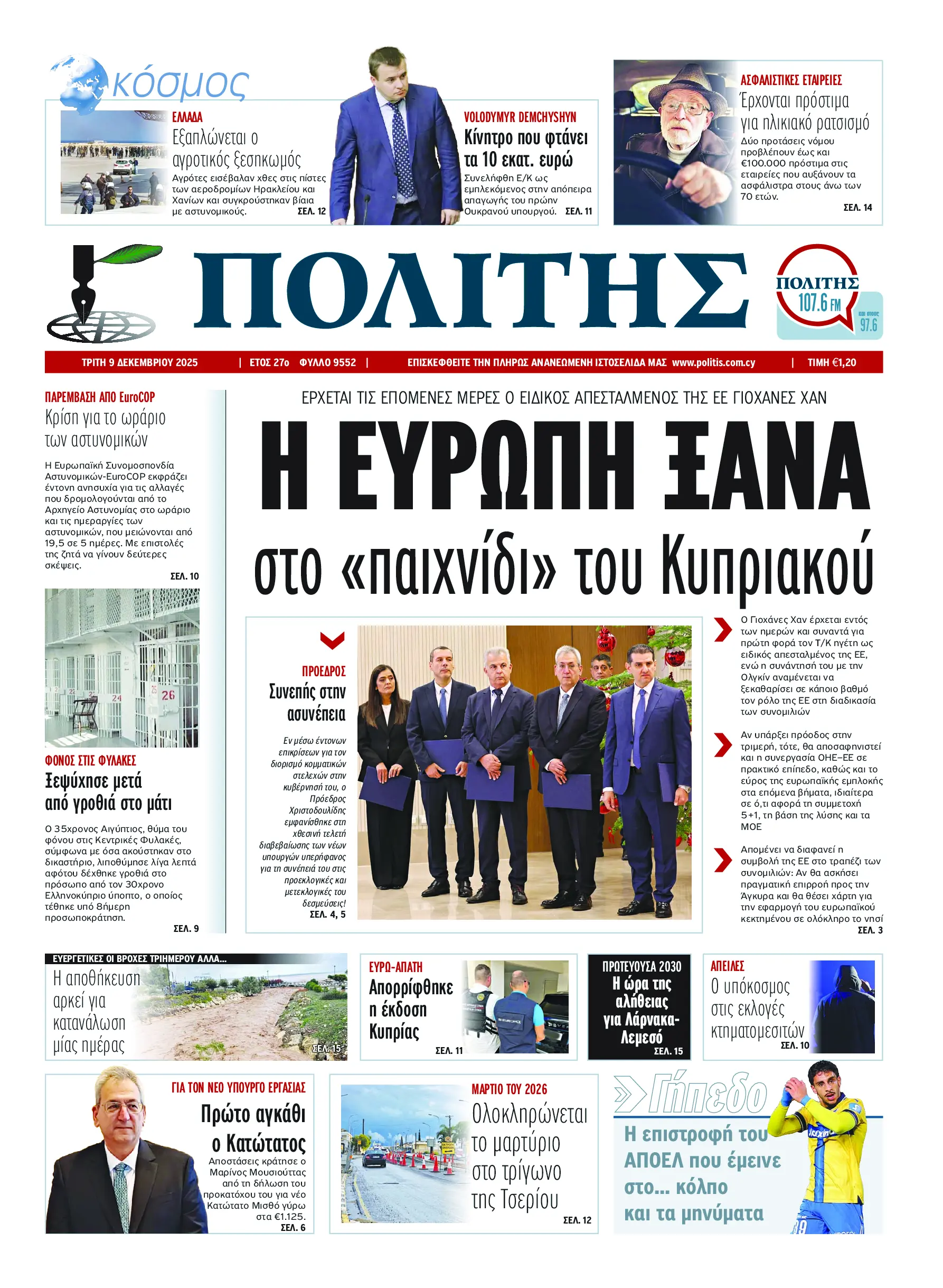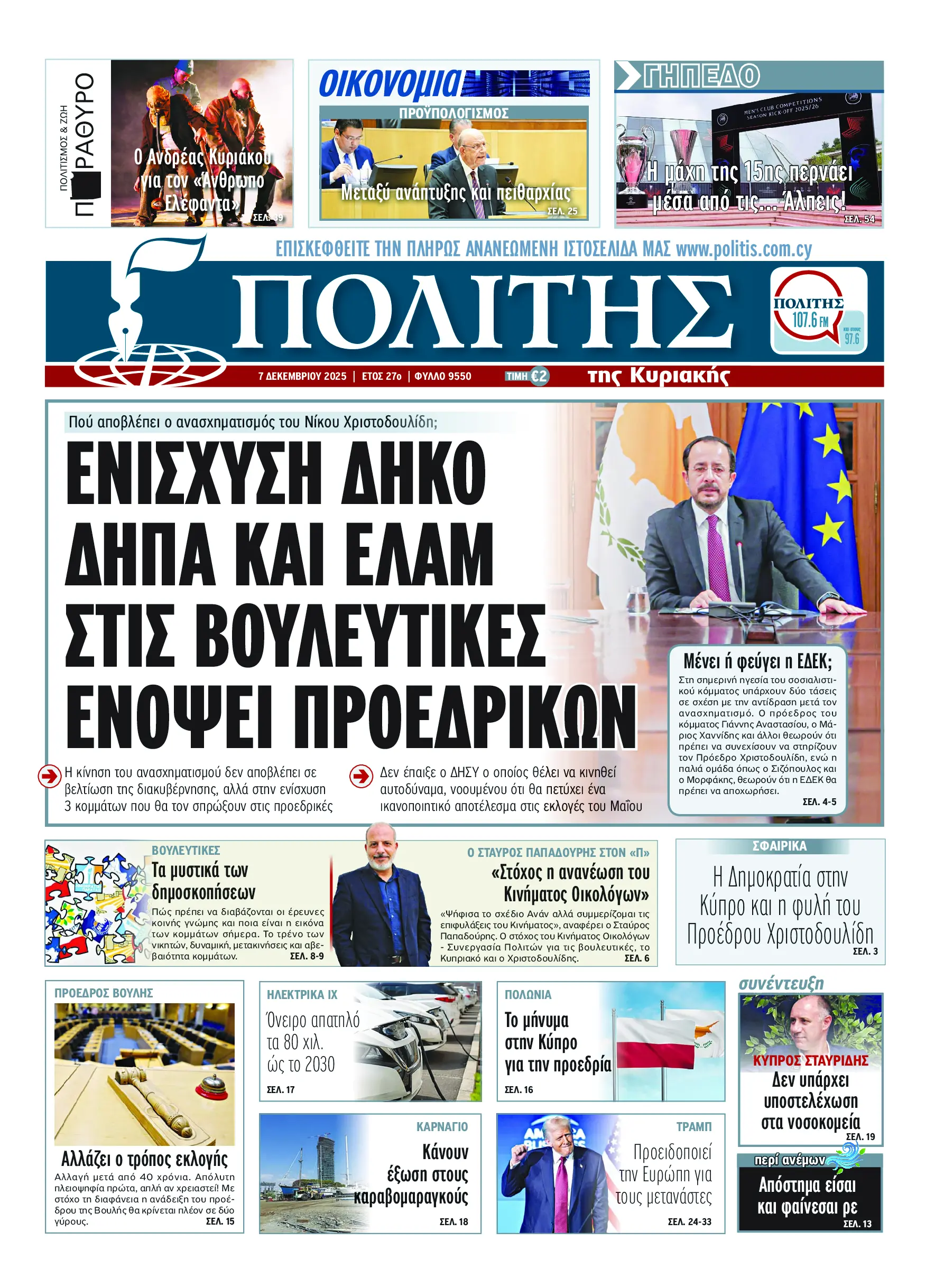 Σας καλωσορίζουμε στην Ψηφιακή Έκδοση της εφημερίδας «ΠΟΛΙΤΗΣ» σε ηλεκτρονική έκδοση στο διαδίκτυο. Η Ψηφιακή Έκδοση του «Π» διατηρεί τη μορφή και την αισθητική της εφημερίδας και είναι διαθέσιμη συνδρομητικά στην οθόνη σας, το κινητό και το tablet σας, από τις 05.00 το πρωί καθημερινά.