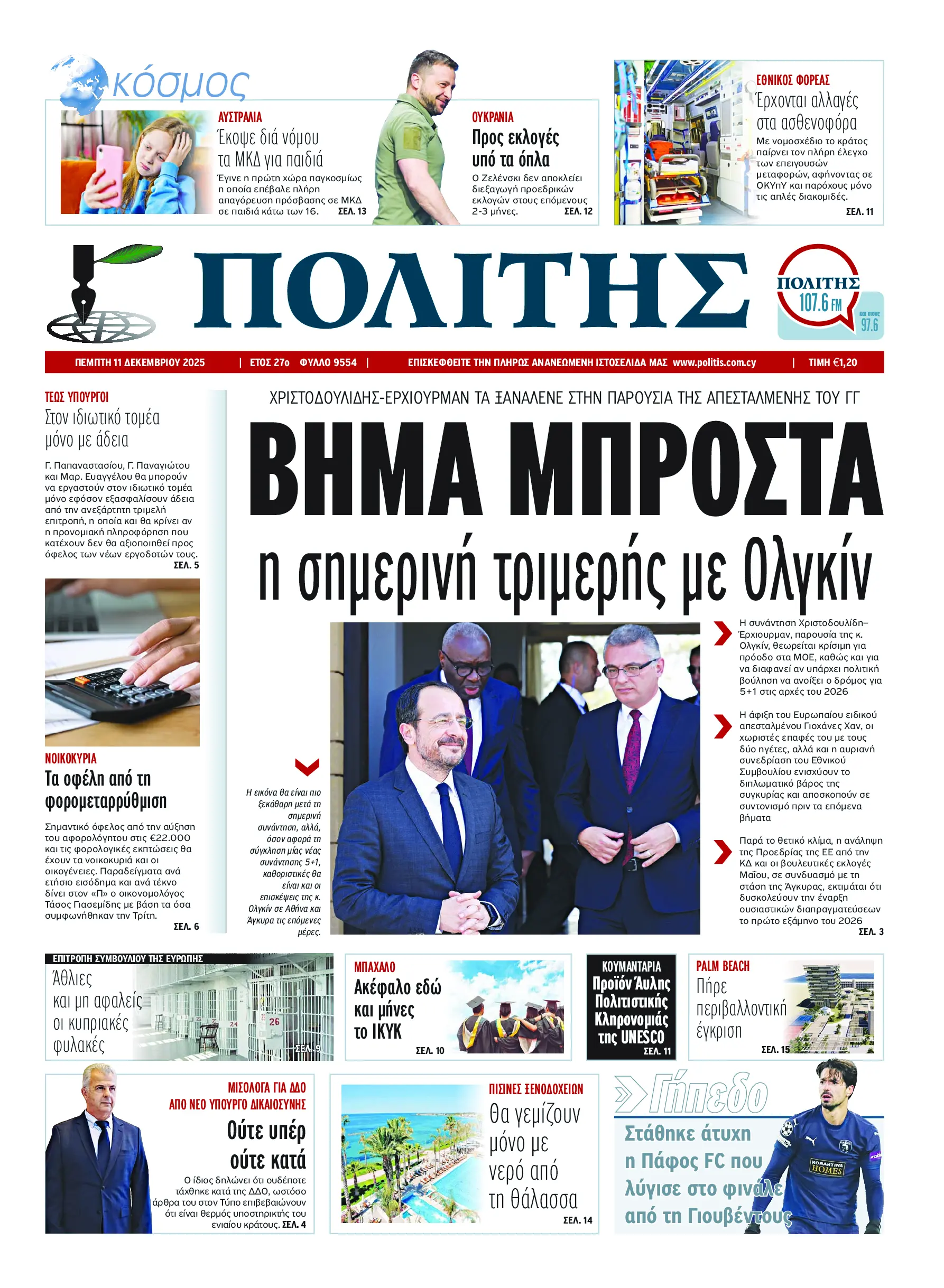 ΒΗΜΑ ΜΠΡΟΣΤΑ η σημερινή τριμερής με Ολγκίν